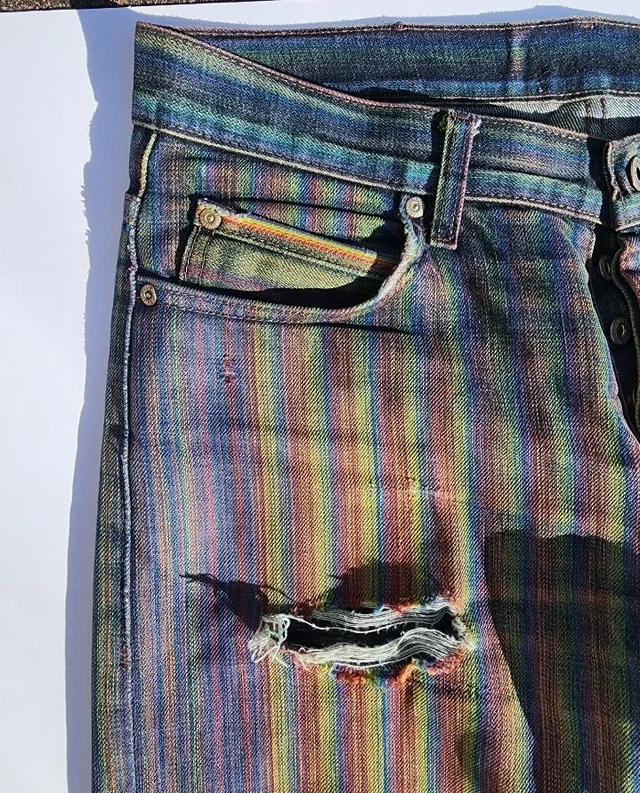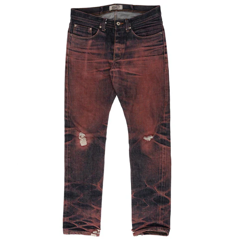 I added these last three out of respect for the game. These aren't jeans I would ever actually wear, but I still appreciate the brands for producing them for the ultra denim nerds out there. Naked & Famous has quite a few drops that follow the same concept - bright, atypical colored thread cores under a darker indigo surface layer. The resulting fades are loud and in your face. While I wouldn't consider any of these classy, I respect the brands for pushing boundaries.