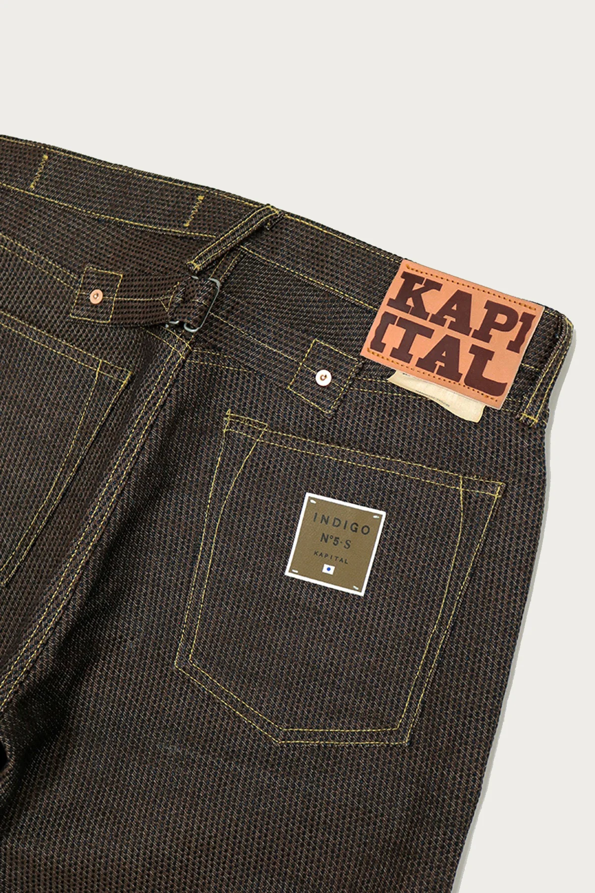 Kapital's ethos seems to be an avant-garde take on vintage American and Japanese workwear. I read somewhere that the aesthetic is also Apocalypse survivors. Not sure what that means, but I can respect a fashion-forward brand that also makes very high-quality, durable goods. One of their standout developments is their "Century Denim," which has a very distinct look up close. They incorporate sashiko stitching into the weave process, creating a grid-like structure and texture across the fabric surface. They offer this in an array of eye-catching colors, both in jeans and jackets.
